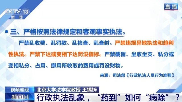 北京大学法学院教授 王锡锌:“温度”这个概念其实在过去表述当中,主要是指“文明执法”。那么,“文明执法”其实在法律法规所设定的行政执法程序当中,有一些基本要求,比如执法方式上,一定要以利益损害最小的方式来完成执法的目的。所以,执法的方式首先应该平和,要温和且合理。