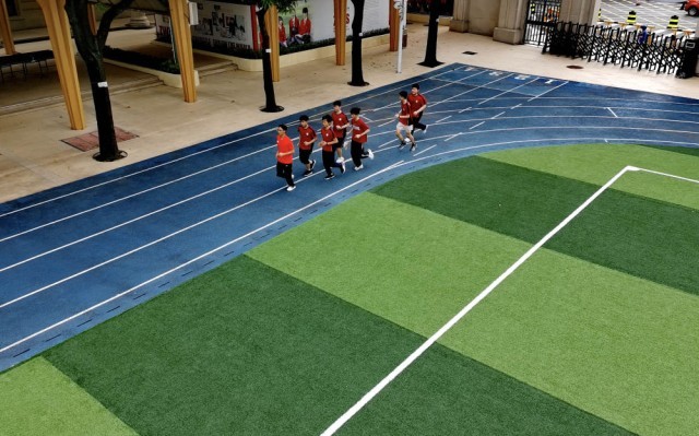 广东现代五项运动协会教练员带领广州市中黄港澳子弟学校学生进行慢跑训练。新华社记者 肖恩楠 摄