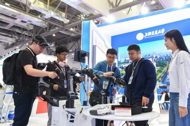 观众在第63届高等教育博览会上了解机械臂。新华社记者 张楠 摄