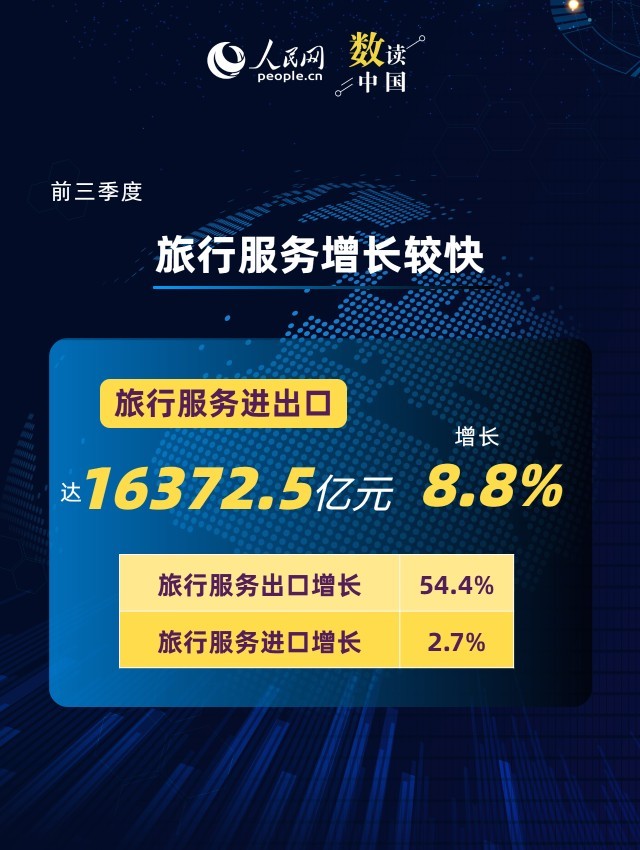 近日,商务部数据显示,今年前三季度,我国服务贸易稳步增长。其中,知识密集型服务贸易保持增长、旅行服务出口高速增长。一组数据带你看“中国服务”,正源源不断成为全球市场的新订单。
