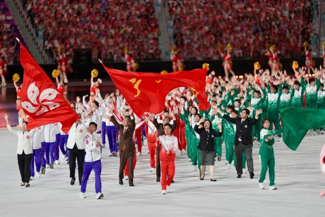 第十五届全国运动会运动员入场仪式的最大亮点,无疑是粤港澳三地代表团一同入场。三地体育健儿,在入场仪式中精神饱满、自信从容,频繁互动交流,充分展示了粤港澳三地文化同源、人缘相亲、民俗相近的人文属性。