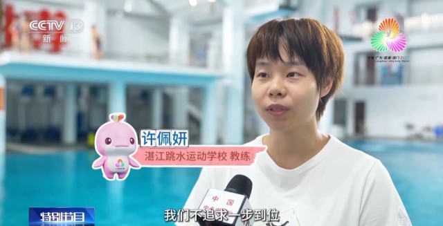 湛江跳水运动学校教练 许佩妍:我们不追求一步到位,因为我们很多孩子都是海边长大的,喜欢追波逐浪,那么他们来了以后,我们先让他们爱上水,爱上跳跃,正是这份兴趣成为他们成长最大的基础。