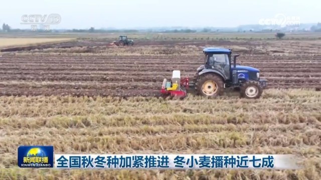秋冬种面积占全年粮食播种面积的近四分之一,农业农村部最新农情调度显示,全国冬小麦播种近七成。