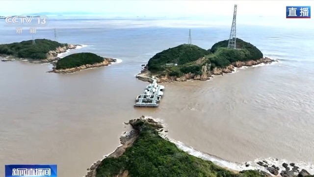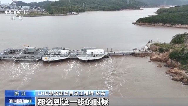 总台记者 吴桐:我现在是在浙江舟山岱山县的秀山岛,我脚下的这座建筑,就像横跨在两座岛屿之间的一架“小提琴”,矗立在这滚滚海流之上。它就是世界首座海洋潮流能发电站——LHD电站。