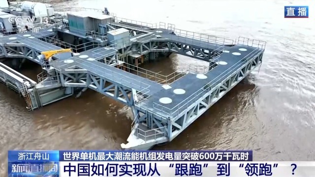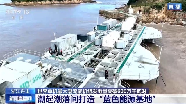 海洋能是重要的绿色可再生能源,潮流能,是我国重点推进规模化应用的海洋能之一。近日,位于浙江舟山的世界单机最大潮流能机组,发电量突破600万千瓦时。这座世界上首座海洋潮流能发电站,究竟怎样输送“蓝色电力”?跟随记者的镜头,一起去看看潮流能如何开发利用。