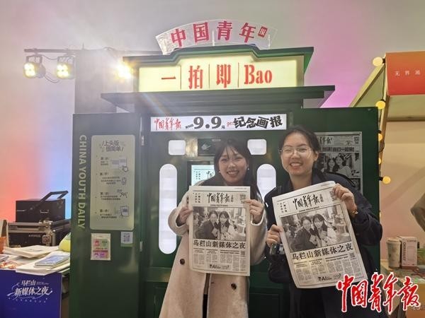 新媒体之夜活动中,中国青年报社的“拍报机”受年轻人追捧。中青报·中青网记者 王烨捷/摄