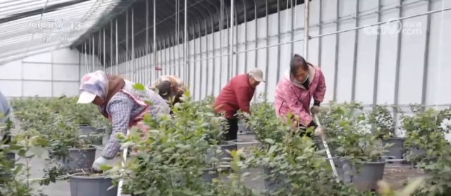 在江苏连云港市赣榆区黑林镇的蓝莓种植基地,一排排标准化温室大棚整齐排列,工人们正分工协作,为大棚加装保温棉被。赣榆区蓝莓种植面积约2.95万亩,其中设施栽培占比超七成,目前大棚内的蓝莓已陆续进入盛花期。