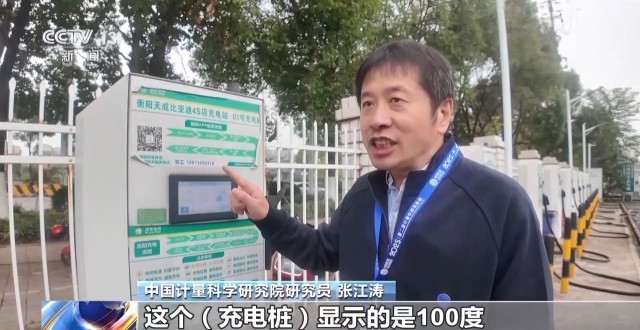 中国计量科学研究院研究员 张江涛:这个充电桩显示的是100度。我们以校验仪为标准,实际显示是在99度和101度之间,代表这是合格的。如果充电桩显示100度电,而校验仪显示只有98度电,差了两度,这就大于1%的误差线,因此充电桩不合格。如果在1%范围内,就是合格的充电桩,老百姓可以放心使用。
