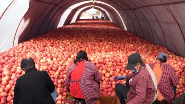 冬日已至,果园仍忙。在陕西省千阳县,一片片矮砧苹果园里,果农们抢抓农时、采摘晚熟苹果的身影仍随处可见。