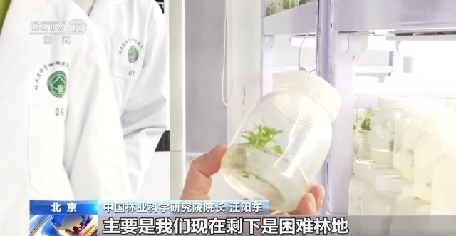 中国林业科学研究院院长 汪阳东:我们需要解决的问题,主要现在剩下是困难林地,像盐碱地、“三北”地区的干旱地,这些地方需要的品种要有抗旱、耐盐碱,还抗风。所以我们培育这些品种将来会不仅是扩绿,而且还维持全球生态系统更加稳定、更加优化。