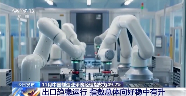 国家统计局服务业调查中心、中国物流与采购联合会今天发布11月份中国制造业采购经理指数。数据显示,11月制造业出口趋稳运行,需求整体有所恢复,指数总体向好,制造业稳中有升。