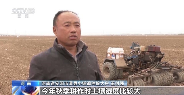 河南省安阳市滑县小铺镇种粮大户 王付强:今年秋季耕作时土壤湿度比较大,坷垃比较多,小麦播种以后通过镇压碎土效果比较好,增加土壤与种子的紧实度,可以增加抗寒能力。