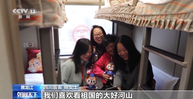300余名游客在哈尔滨站登上Y783次旅游列车,开启为期6天的“找北”之旅,行程涵盖雪乡、漠河、阿里河鄂伦春部落等景点。