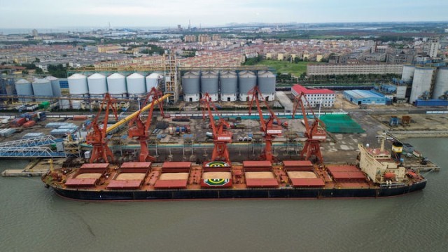 船只靠泊在龙口港(7月2日摄,无人机照片)。新华社记者 徐速绘 摄