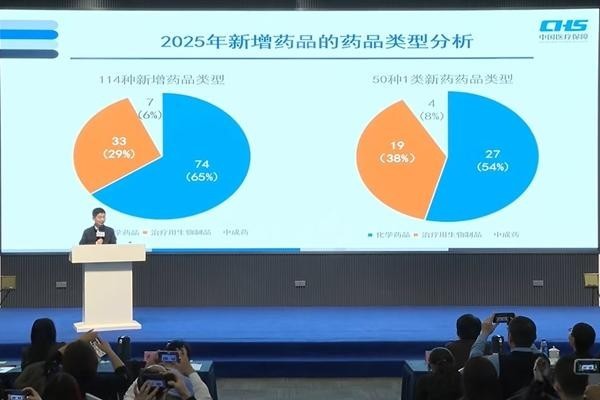 12月9日,国家医保局举办2025年医保药品目录解读活动现场,新版国家医保药品目录调整新增114种药品,其中50种为一类创新药。主办方供图