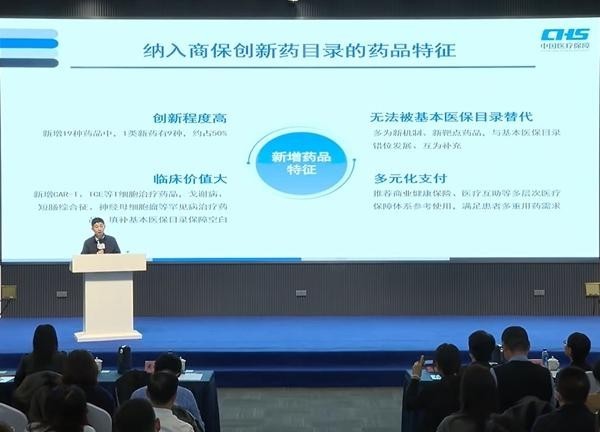 12月9日,国家医保局举办2025年医保药品目录解读活动,国家医保局医药服务管理司司长黄心宇解读纳入商保创新药目录的药品特征。主办方供图