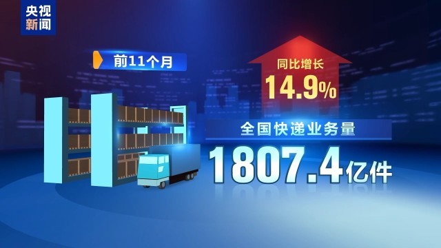 国家邮政局发布的数据显示,前11个月,全国快递业务量达1807.4亿件,同比增长14.9%。今年以来,消费品以旧换新政策持续加力、扩围实施,带动更新换代需求有效释放,推动快递业务量实现显著提升。前11个月,家居、家电等大件快递业务量同比增长约30%。快递行业还持续加强科技创新能力建设。在智能仓库内,各类机器人穿梭于货架之间;在智能分拣中心,AI识别系统助力分拣效能显著提升;末端配送环节中,无人配送车、无人机与快递员协同配合,有效缩短配送时间。