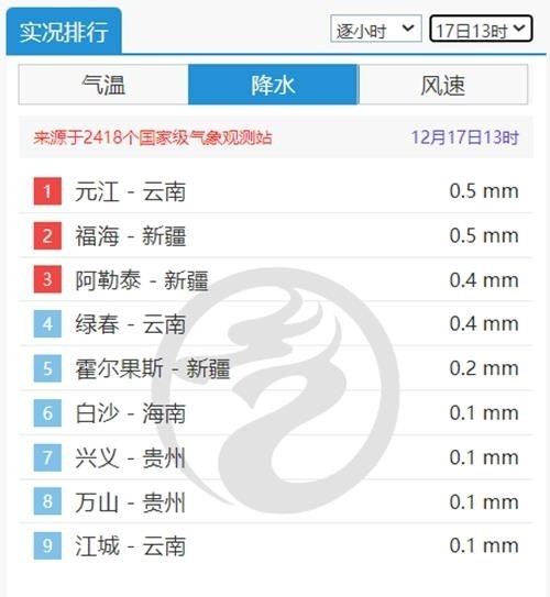 近日,我国大部地区雨雪持续稀少,今天13时,全国降水榜上凑不齐十个达到或超过0.1毫米降水的国家级气象站点。明后天(12月18日至19日)南北方雨雪将呈增多趋势,其中西北地区东部、内蒙古东部、东北地区将有大范围雨雪,局地大雪,南方以小雨为主,能起到一定润燥作用。