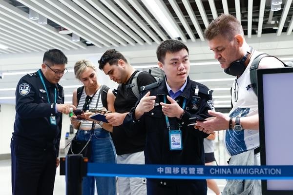 12月18日,海口美兰边检站民辅警为入境旅客服务。新华社发