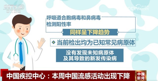 央视网消息:中国疾控中心18日晚发布全国急性呼吸道传染病哨点监测情况。监测结果显示,本周中国流感活动出现下降,总体仍处于高流行水平,其中东北、华北、西北地区省份流感活动持续下降,华中、华东、华南、西南地区仍有部分省份流感活动上升,但上升幅度趋缓;呼吸道合胞病毒和鼻病毒检测阳性率同样呈下降趋势。当前检出均为已知常见病原体,没有发现未知病原体及其导致的新发传染病。