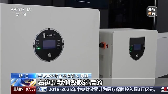 宁波某外贸企业负责人 陈斌:左边的这个产品是我们原来的旧产品,右边是我们改款过后的,相比原来的产品,新产品重量减少了15%左右,体积减小了25%左右,它的能量密度就更高了,在市场上就具有更好的竞争力。