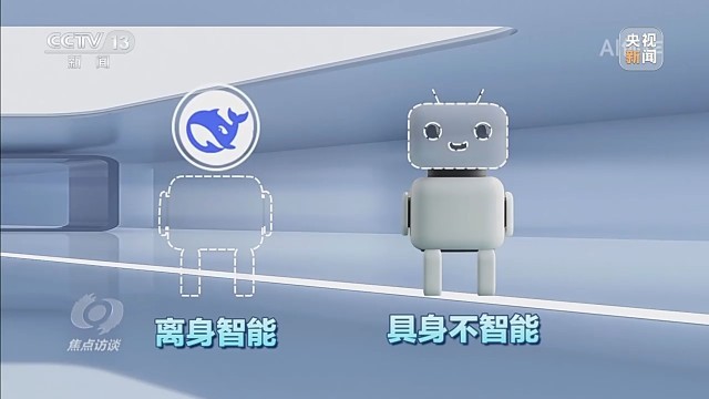 比较来说,DeepSeek属于有“大脑”,但没有“身体”在现实世界中执行任务的“离身智能”,而工厂里的那种传统机械臂虽然有“身体”,但只能靠人类指令完成简单任务,属于具身不智能。