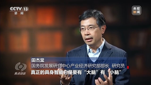 国务院发展研究中心产业经济研究部部长、研究员 田杰棠:真正的具身智能是要有“大脑”、有“小脑”,还有物理形态的执行能力。它不会局限于是人形机器人,比方物理形态也可以是机械,也可以是汽车,也可以是各种仿生的蝴蝶、鱼都可以。我们能看到的物理形态,只要能通过人工智能的方式去指挥它,就可以叫具身智能。