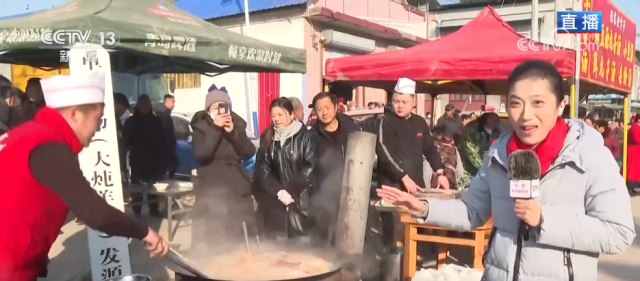 来到大集上怎么能不品尝美食,一饱口福。首先映入眼帘的就是单县的特色美食单县羊肉汤。冬天来上一碗羊肉汤,全身都暖和了!在当地,羊肉汤有红汤白汤的区分,在大集上制作的就是红汤羊肉汤,大家看这个汤色是红润鲜亮,红汤的灵魂在于加入羊油辣椒同煮,其实辣度不算高,食客们非常容易接受,所以也受到了大家的喜爱。现场有很多食客正在排队等待品尝。而羊肉汤的“好搭档”就是吊炉烧饼,用这种特制的吊炉烤出来的饼外脆内软,搭配着羊肉汤吃,那滋味真是美极了!