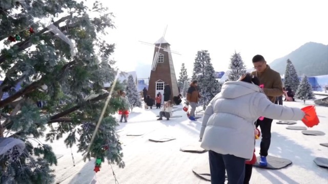近日,杭州多地的雪场陆续开放,吸引了众多游客。位于杭州市临安区的青山湖童话森林冰雪世界汇集20余个趣味游乐项目,可满足不同年龄段游客的游玩需求。