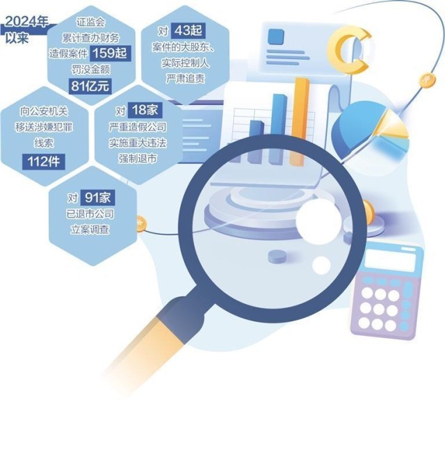 财务造假是资本市场的毒瘤,侵蚀信息披露真实性,扭曲资源配置方向,伤害中小投资者合法权益,也破坏市场公平竞争秩序。自2024年7月国务院办公厅转发《关于进一步做好资本市场财务造假综合惩防工作的意见》以来,监管利剑高悬,执法震慑显著增强。据统计,2024年以来,证监会累计查办财务造假案件159起,罚没金额高达81亿元;对43起案件的大股东、实际控制人严肃追责;向公安机关移送涉嫌犯罪线索112件。