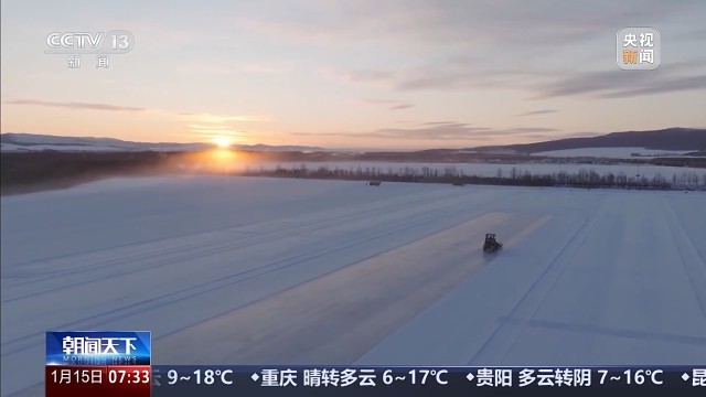 在内蒙古牙克石,国家高寒机动车质量监督检验中心的测试基地,眼下的每天清晨,气温低至零下30℃,但在这个已经冰冻数米深的湖面上,十几名工作人员、十多台作业车辆一早就忙碌了起来。