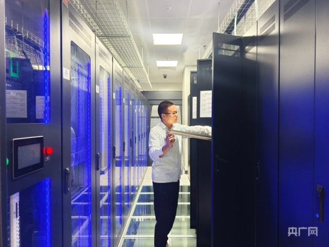 工作人员正在机房检查算力设备(央广网记者 栾小琳 摄)