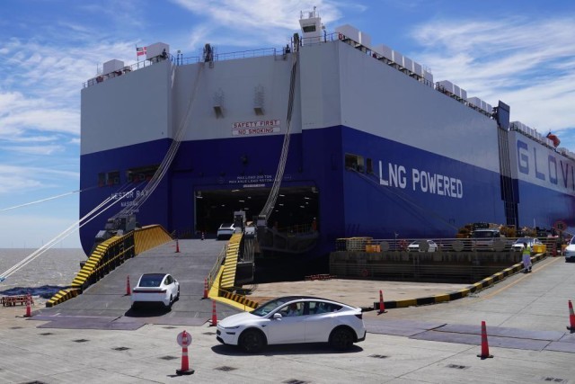 冬日,上海洋山特殊综合保税区内的南港码头上,以LNG为燃料的汽车滚装船“Glovis Success”装载着3700多辆中国出口的汽车前往墨西哥的拉萨罗卡德纳斯港。