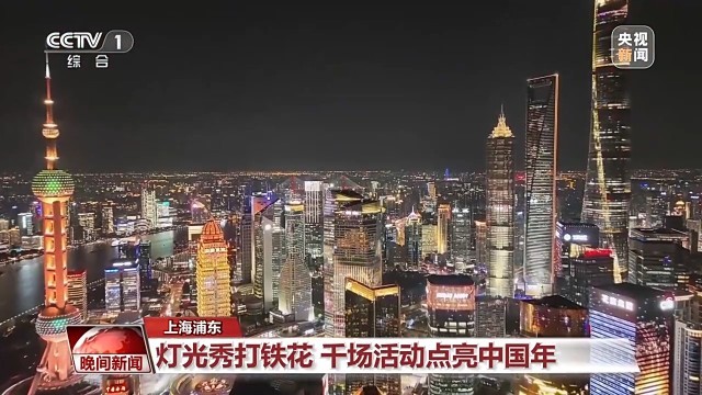 这几天,上海浦东也举行多个活动迎接传统中国年。民俗体验、特色市集等近千场主题活动,为上海增添了浓浓的年味儿。到了晚上,陆家嘴区域光影秀璀璨上演,以“上海蓝、中国红、盛世金”为色彩基调,用光影书写浦东发展新篇,“打铁花”等民俗活动和展演,也在黄浦江畔上演。