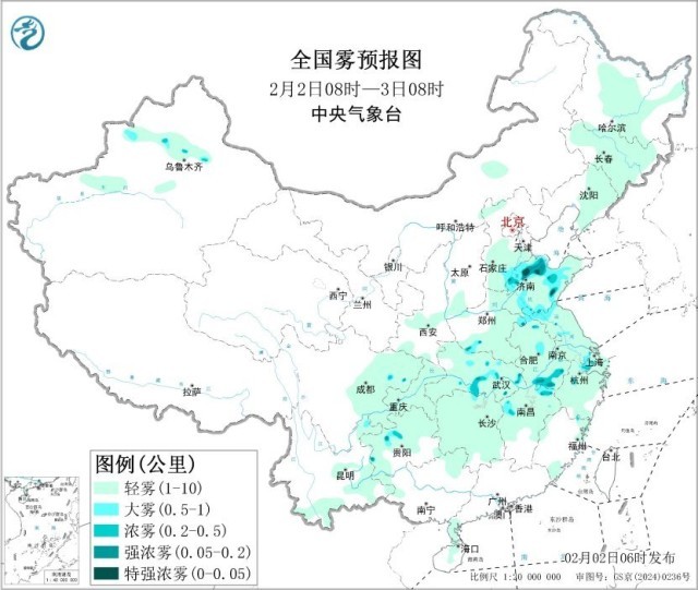 央视网消息:据中央气象台网站消息,2日早晨,山东、安徽、湖北、贵州西部及新疆北部等地出现大雾,部分地区出现能见度不足500米的浓雾。预计今天上午,山东、安徽东北部和西南部、江苏北部、浙江北部、湖北中东部等地的部分地区有大雾,局地有能见度不足200米的强浓雾。大雾天气能见度低,公众交通出行需注意安全,驾车低速行驶并保持安全距离。