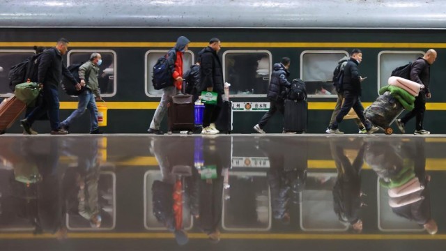 2026年2月2日凌晨,旅客在南京火车站乘车出行。新华社发(苏阳 摄)