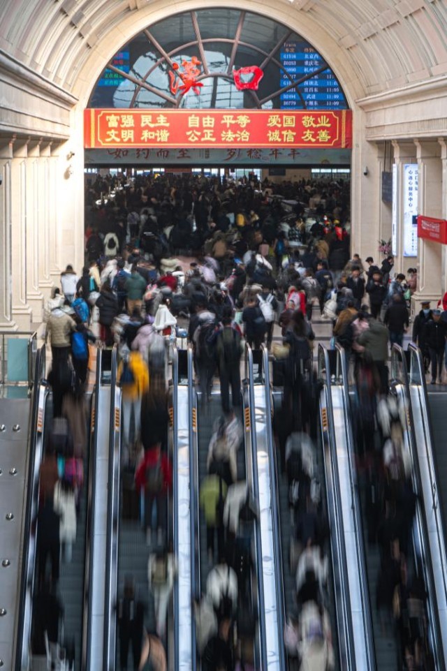 2026年2月2日,旅客进入南京南站候车大厅候车。新华社发(杜懿 摄)