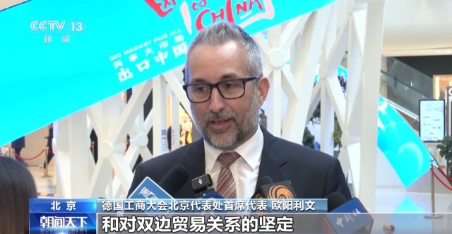 德国工商大会北京代表处首席代表 欧阳利文:今天的活动也传递了信心和对双边贸易关系的坚定,中国市场变化很快,消费者偏好也在变化。因此专门为中国设计和制造的产品需求很高,考虑到中国市场的规模,这些是令人兴奋的机会。