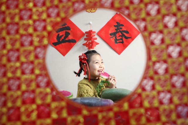 2026年2月3日,在河北省唐山市丰润区太平路街道冀新社区,小朋友在吃萝卜“咬春”。新华社发(朱大勇 摄)