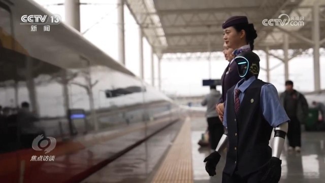 科技赋能助力春运“走得好”,在提升旅客出行体验的同时,也让服务更高效。今年春运,在杭州东站开往北京南站的“西子号”高铁上,一位身着铁路制服的特殊“编外乘务员”——记忆型机器人“福兴”上岗了。