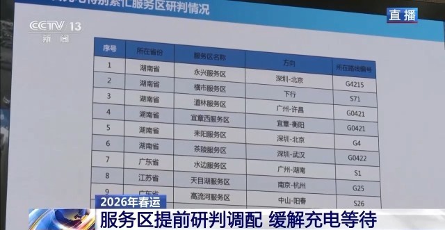 许广高速湖南段的道林服务区、福银高速湖北段的武当山服务区、京港澳高速河南段的新郑服务区以及京沪高速江苏段的阳澄湖服务区,这几个服务区在日常的节假日中车流量还是比较高的,目前服务区停车位大部分都停满了。今年交通运输部启动了服务区提质升级行动。在春运期间,各服务区会加强停车引导,