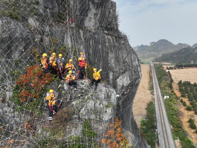 湘桂铁路南凭段是中越国际铁路通道,是中越班列、中越国际联运客车通往越南的必经之路。铁路沿线石山林立,山高岩陡,是典型的喀斯特地貌。春运期间,更多跨国班列从这里经过,沿线隐患排查整治也更繁忙。