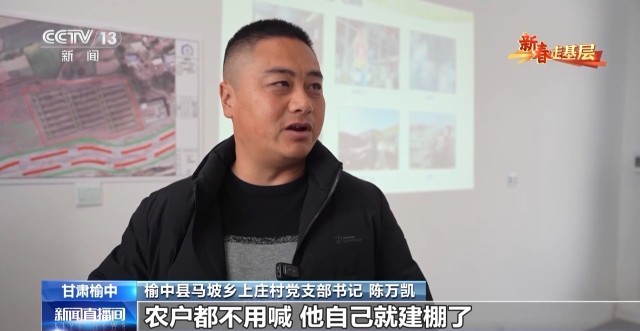 榆中县马坡乡上庄村党支部书记 陈万凯:先试验种两年,如果效益好,农户自己就建大棚了。