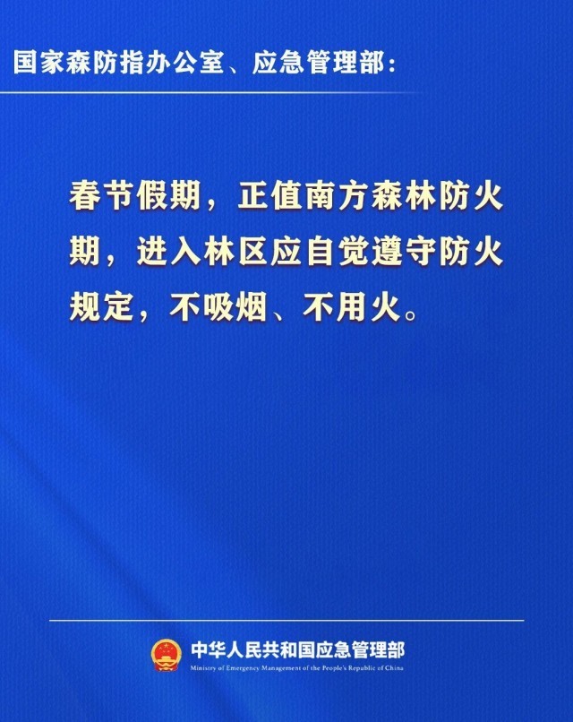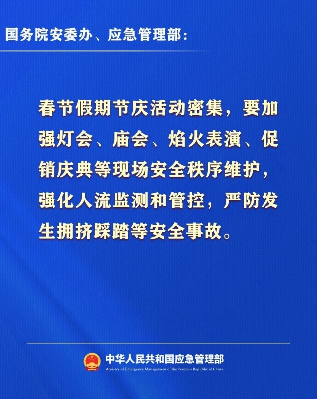 央视网消息:据应急管理部公众号消息,今日(2月13日)国务院安委办、应急管理部发布2026年春节假期安全提示。