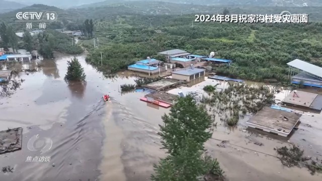 祝家沟村位于一个三面环山的山洼里,村里有492户1700多人。由于地势低洼,在2024年8月那场强降雨到来的时候,不少村民的房子都被大水淹没了。
