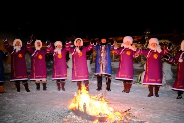 2月16日,除夕之夜,赫哲族群众在东极村载歌载舞,欢庆春节。经济日报记者朱双健摄