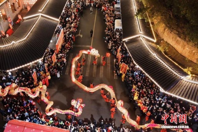 2月18日晚,四川省乐山市沐川县,两条草龙全城巡游。 (受访者 供图)