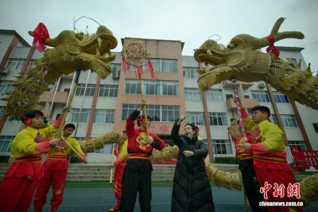 2026年春节假期期间,陈丽燕在沐川县中等职业学校带领团队练习舞龙。 中新社记者 刘忠俊 摄
