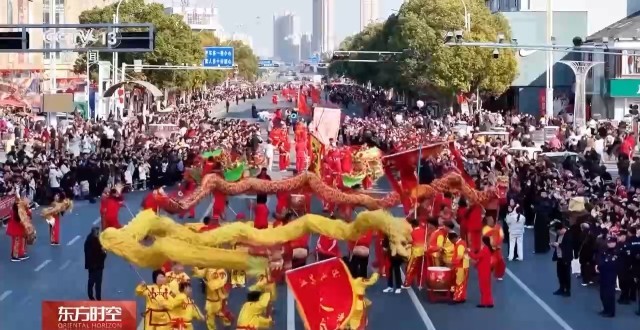 在江苏泗洪县,锣鼓铿锵,舞狮腾跃,演员们身着盛装,踏着欢快的节奏,将传统民俗的韵味展现得淋漓尽致,让大家在欢声笑语中感受传统文化的魅力。当地还开展湿地新春徒步游,让大家在行走中感受生态之美,以运动活力点燃新春年味。