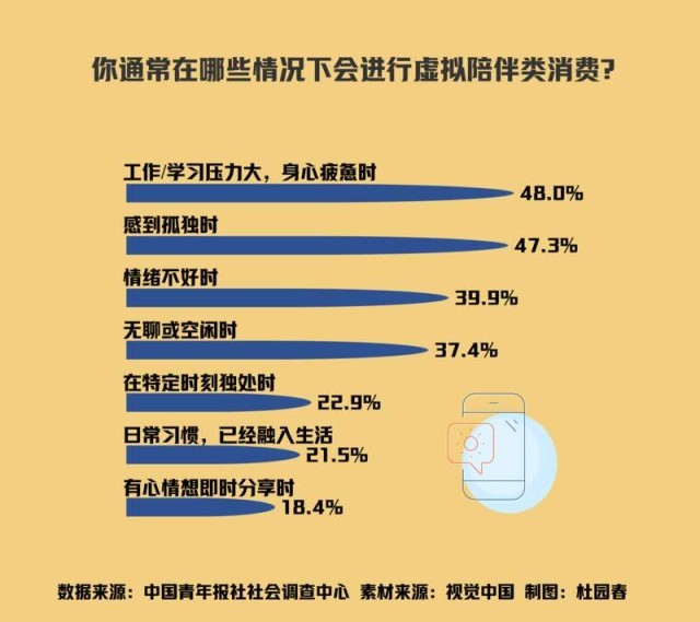 近半数受访青年会在压力大或孤独时进行虚拟陪伴类消费